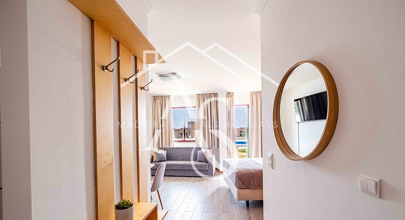 This elegant studio flat, located in Garajau, is a perfect retreat for those seeking a sophisticated and peaceful living experience.